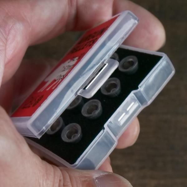 ペレットの変形を心配する事なく運ぶことができる専用ケース。内部にセットされたスポンジには口径に合わせて開けられた12個のホールが用意され、ペレットをソフトにホールドします。