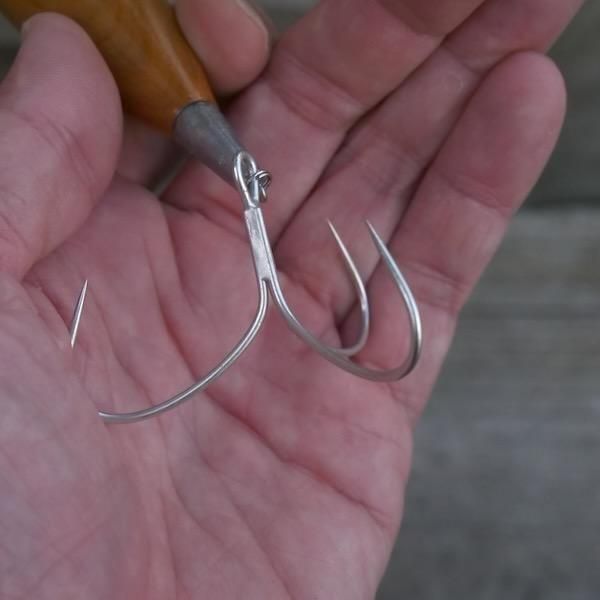 多数の針がついて、大きなサイズになってしまうカモキャッチャーの扱いはなかなかの困りもの。ダックミノーは最小限のフックサイズでストレスなく取り扱うことができます。