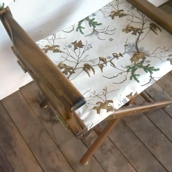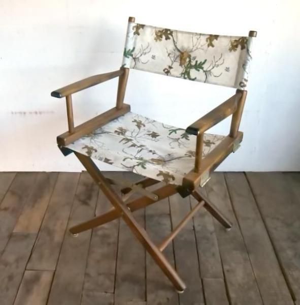 定番のディレクターズチェアをリアルツリー®︎社のナイロン生地で張替ました。リアルツリー柄の独特のデザインによって一般的なディレクターズチェアにはないスペシャルな一台に仕上がりました。制作数は1台のみです。お見逃しなく。